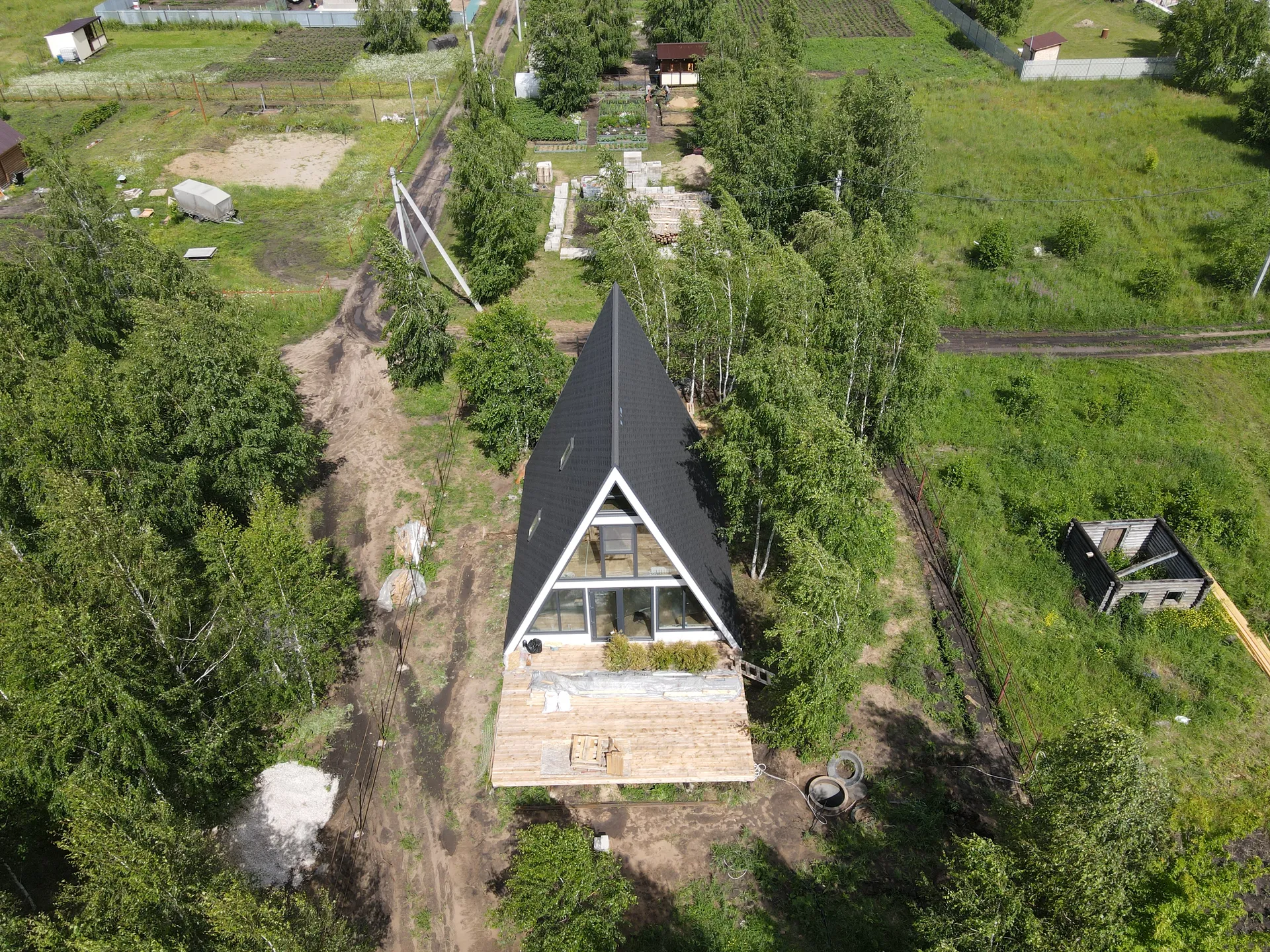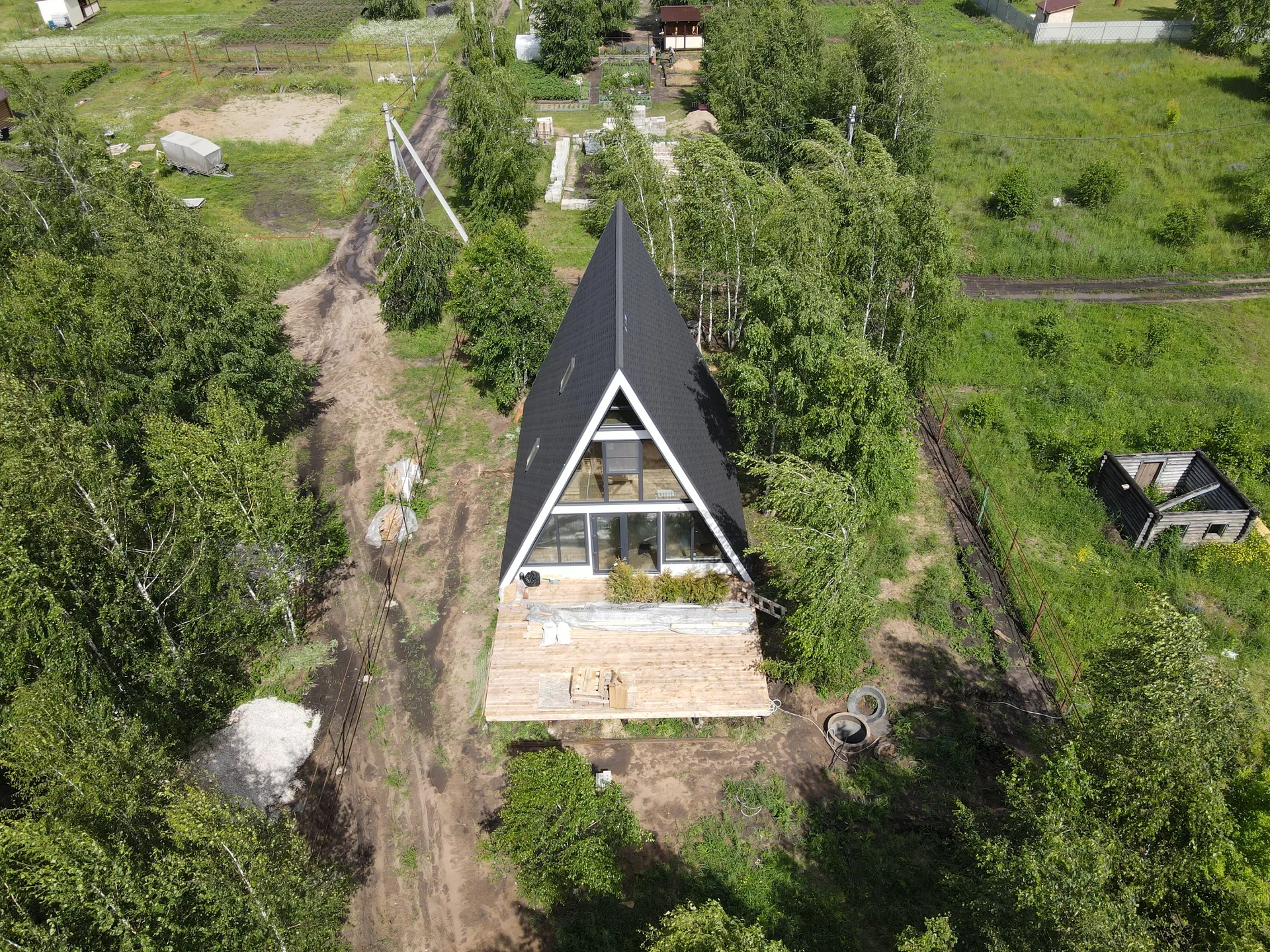 Дом в стиле «А-фрейм» выделяется своей оригинальной формой и большими окнами, которые наполняют пространство естественным светом и создают ощущение простора. Уникальная архитектура позволяет эффективно использовать внутреннее пространство, создавая уютные комнаты для отдыха и общения.